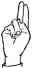 На ћирилици написано РАДОВАН АНЂУШИЋ састоји се из 14 слова [?]. Исписано ћириличном једноручном азбуком за глувонеме: